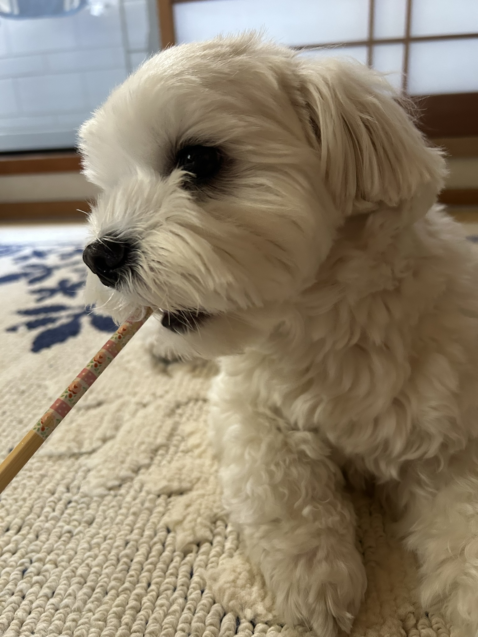 落としてしまった菜箸をさーっと取って行ってしまった、悪そうな顔をしたまるちゃん🐶👇