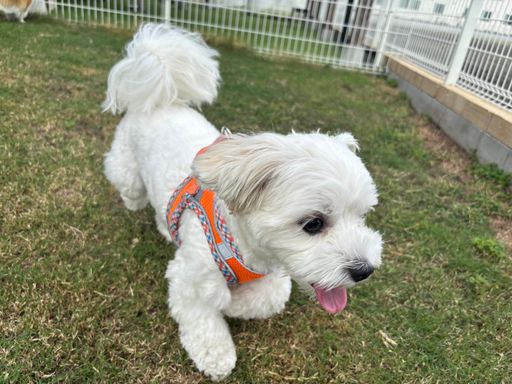 他のワンちゃんが、お友達になろ~ってお尻をクンクンしてくれるけど、まるちゃんは逃げ回っています😅