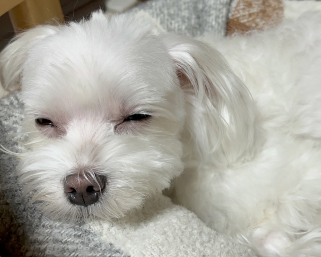 お昼寝後は、普通にお散歩に行ったんだけど、夕ご飯の支度をしている頃からまるちゃん🐶はずっと寝てました。