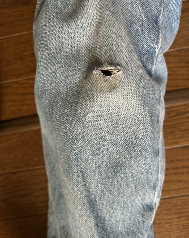 こけた感じ以上に痛くて足をみると、ジーンズが破れていました。